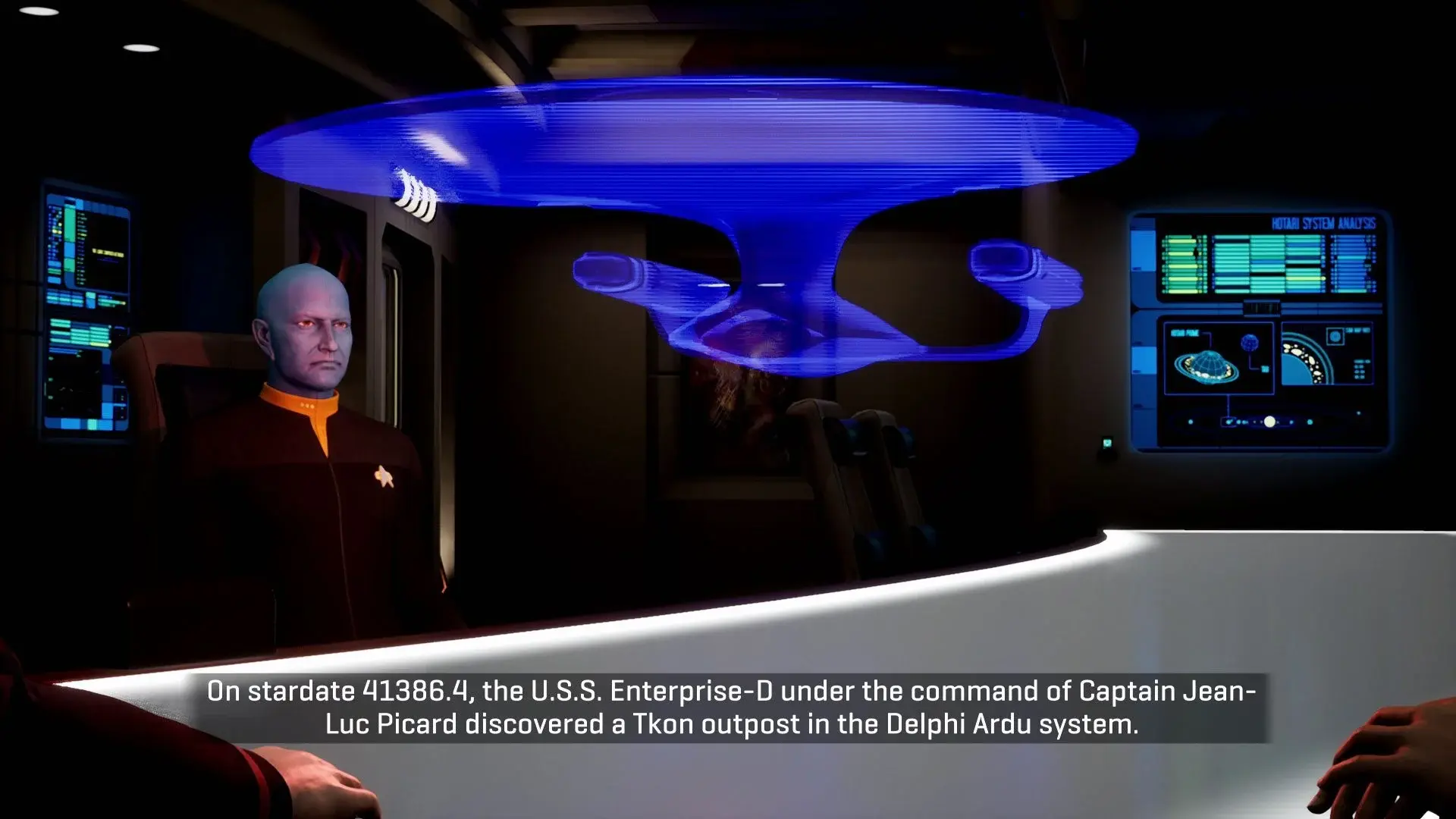 Martin: There are all kinds of mysteries and unanswered questions in the world of Trek, some deeper cuts than others. Even just looking at the Original Series and its movies there are plenty. Where did V’Ger come from? Who made the Doomsday Machine? What does god need with a starship? We spent a lot of time looking at a lot of different canonical threads to pull on that we might want to bind to our original story. But the Tkon Empire felt right pretty much immediately. Beyond that, across the board, we have little hints and Easter eggs that we’ve included and many more that didn’t make the cut. A reference to a giant green hand in space, a Rockman, and a talkative Lurian are examples that didn’t find their way into the final game.