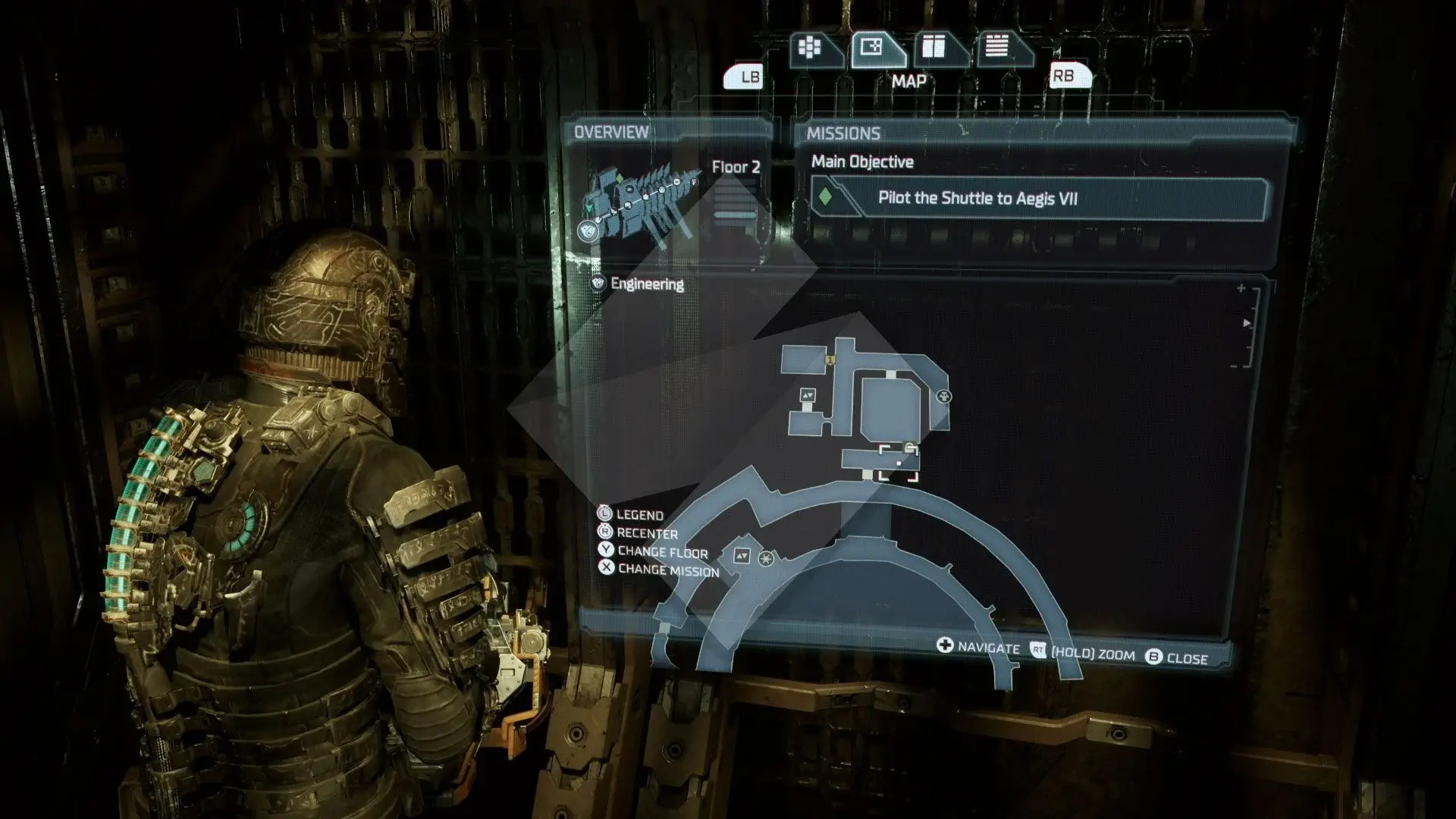 - Intermediate Engineer RIG schematic (Suit Level 3): Found just beyond the water purification room, or on the way to ADS cannon calibration (Bridge; Floor 5 – EVA Prep Room in Chapter 4). This needs to be equipped at a Bench.