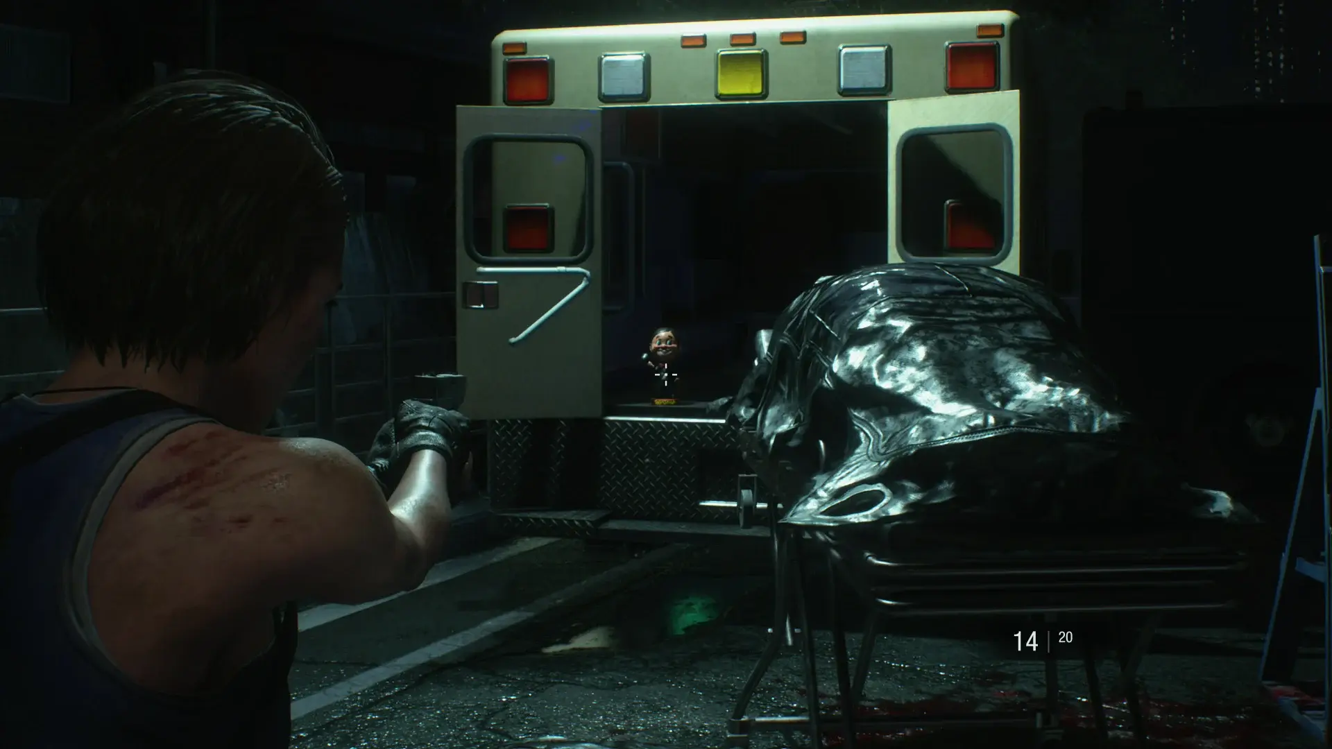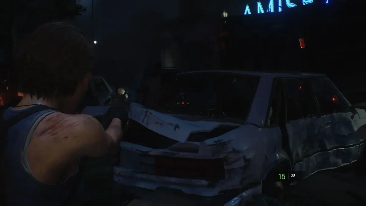 Directly after ducking under the shutter, look into the ambulance to your right. As a head’s up, we used this area and the single zombie within to get in 25 perfect dodges. They’re required for a Charlie later on.