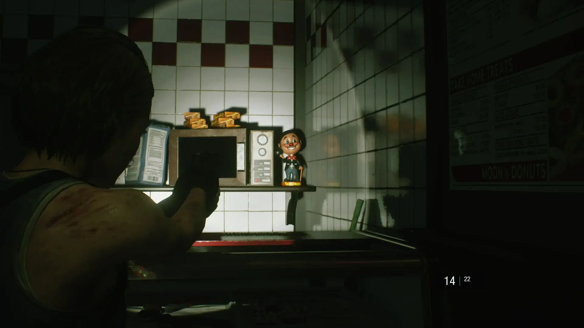 Once that’s done, head to the left — there’s a barricade still up, preventing zombies from getting you. Look through them to the roof of the Moon’s Donut store. See the Charlie that’s spawned on top? Go ahead — take the shot. You can make it! (Thanks to PuertoRicanHell!)
