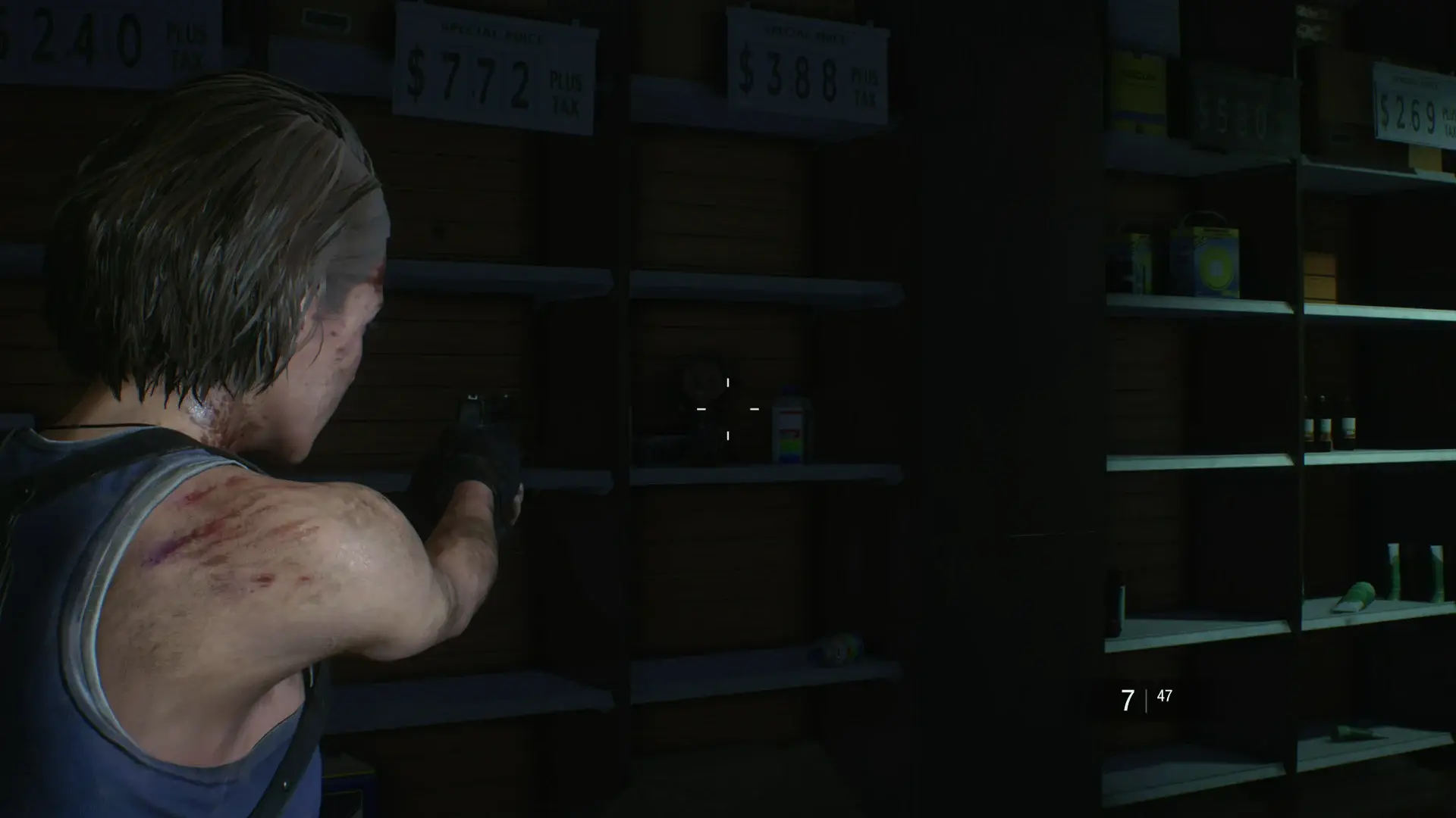 Across the street from the Toy Store is a locked Supermarket. Use the bolt cutters to get in, then look near the cash register.