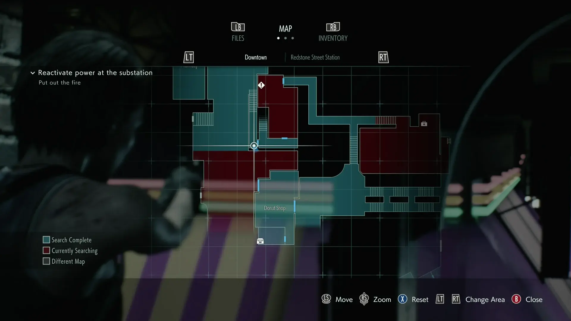 Head back to Moon’s Donuts, then go up the walkway and head left. In the room with a safe found on the other side of the upper walkway. Look to the middle shelving area.