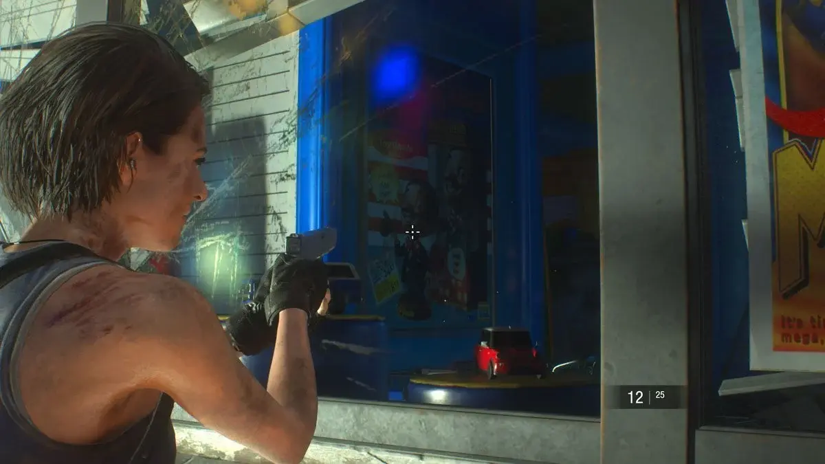 Before heading over to the fire at the end of the street, look to the Toy Store on the right. Look through its centre window and aim at the poster of the Charlie bobblehead for 10+ seconds.