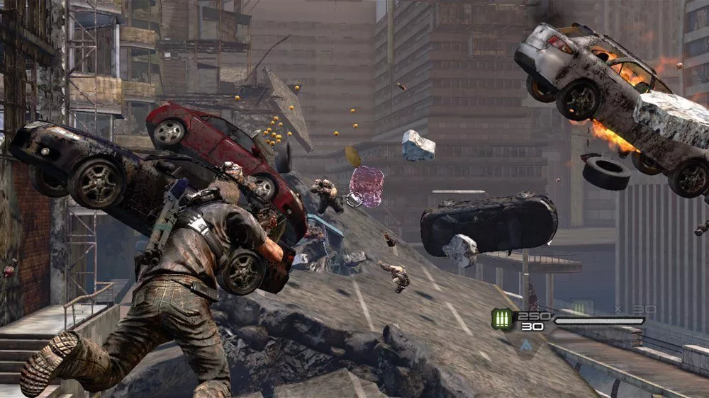 The beauty of it, though, lies in the fact that–for the most part–players DON’T have to use the gravity tech. You could choose to play through most of the game simply using the multitude of guns and grenades that are made available, throwing in a little gravity here and there. Some bosses DO require gravity manipulation, but at these times the developers (Saber Interactive, who also worked on the recent Halo: Combat Evolved Anniversary campaign) have laid the battlefield out in such a way that it’s damned fun.