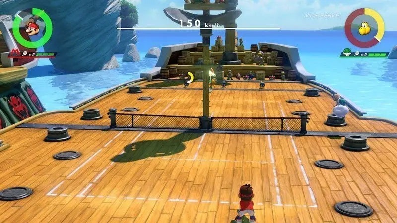 The reduced games do make sense in the new Swing mode, which combines the best of casual Mario Tennis with Wii Sports Tennis. It forgoes the lavish special shots to focus on hitting the ball with precise motion controls using a single Joy-Con like a Wii Remote. The range of movements are considerably more in-depth than Wii Sports, but its ease of use is similar and reacts remarkably like an actual game of tennis, once you adapt to the timing. Backhands and forehands are straight forward, but I was impressed by the implementation of topspin, backspin and flat shots by the angle of your wrist. Like Wii Sports, characters run to position themselves, but with a joystick in hand, you can also take manual control to manoeuvre them around the court. If that seems too complicated for mum and grandpa, there’s a Big Ball mode that signifcantly slows the pace of a gigantic ball, making it much harder to hit it outside the court, and doesn’t worry about shot type — so it basically becomes Wii Sports.